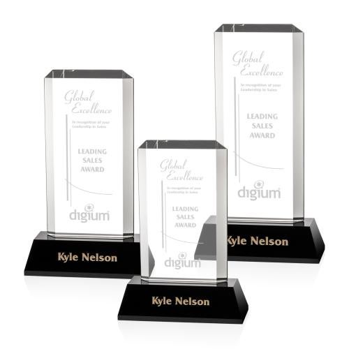 The rectangular optical crystal award features front and back intersecting facets that echo the angles of the beveled black optical crystal base. 2nd position optional.