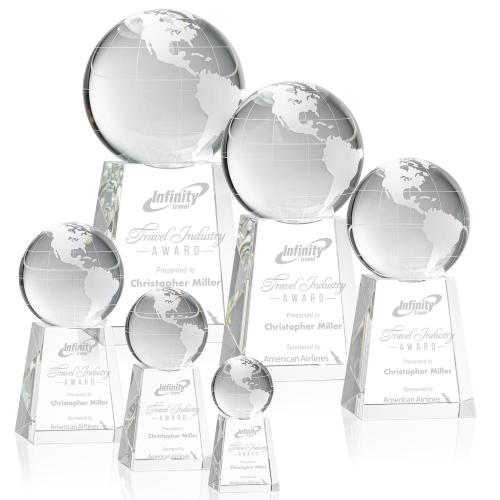 Our Optical Crystal Globe Award on Tall Optical base is truly a sight to behold. From the scaled-down 5" award to the extraordinary and weighty 15" showstopper, this award will perfectly encapsulate the far-reaching appeal of this inspirational recognition piece. Features Solid Optical Crystal Globes from 2.375" to a staggering 8" thick. Globes come unattached and are perched onto a concave bowl in the base.