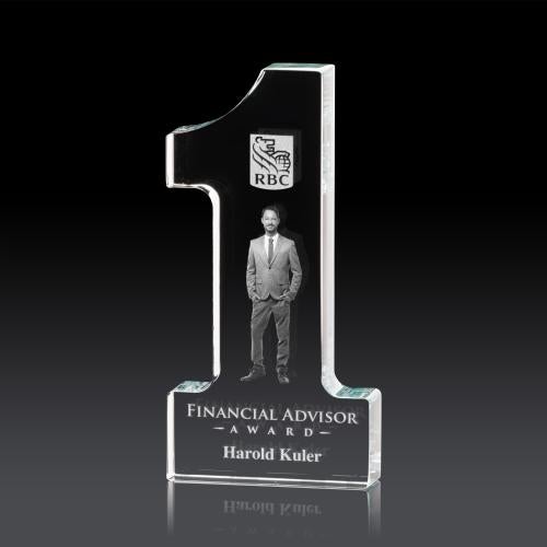 Bring your message to life with Beautiful 3 Dimensional etching inside this flawless optical crystal freestanding "1" Paperweight. This highly polished award is perfect to recognize winners, top performers, and first-place holders of all kinds.