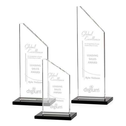 An extra tall Starfire crystal tower gleams with perfection, mounted to a black crystal base to create this classically styled award of excellence.