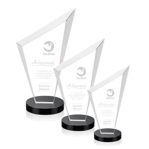Exquisite Deep Bevels accentuate this striking Starfire award. Mounted on a round Black Optical Base and available in 3 sizes.