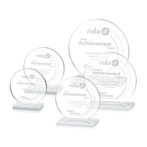 Our extraordinary cut Victoria Award features a flat edged Starfire disc mounted on an elegant ivory crystal base to create a sleek award to recognize excellence.