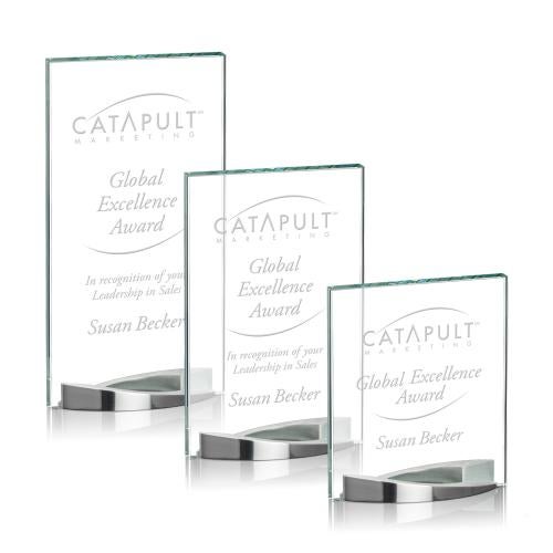 The Starfire Crystal Salerno Award is perched upright with two polished metal crescent stands on the front and back. With a large imprint area, the Salerno award is ideal for any recognition program made to celebrate an exceptional achievement.