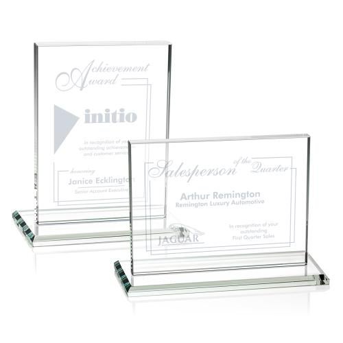 The Emperor Award is a simple yet elegant 0.5" thick Starfire Crystal rectangle upright mounted vertical or horizontal on a beveled Starfire base. An ideal award featuring a large decorating area to recognize a significant achievement.