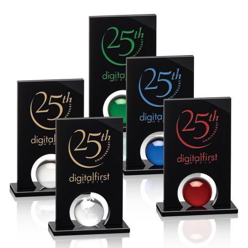 A gleaming crystal orb is mounted to our black optical crystal base and then surrounded with solid black crystal in this dramatic showcase of achievement.
