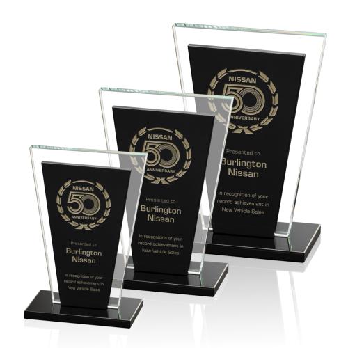 The solid black trapezoidal crystal shape of the Heckel is surrounded by clear crystal that reflects into the black crystal base to create an infinite reflection of elegance.