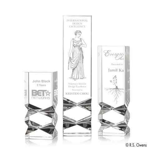 Our optical crystal tower is faceted in this stunning geometric cut that is flame polished to bring its amazing refractive powers to life.