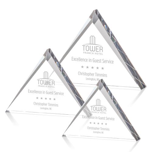 The Tideswell Optical Crystal triangle showcases reflective triangular bezels accenting a spacious, clear imprinting area for a decidedly angular award. The simplicity of the Tideswell allows you to make it into whatever you wish.
