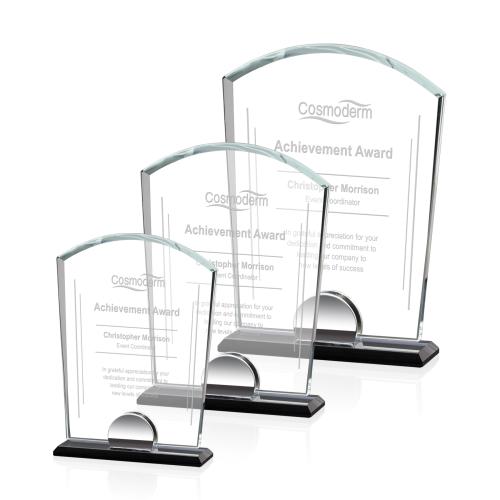 The rounded panel of the Spencer Starfire award has a classic look that exudes honor and pride. Features a chrome finished accent mounted on a black bevelled base.