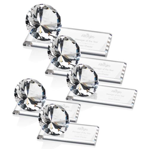 Our stunning reflective optical crystal diamond is mounted to a crystal clear starfire base, resulting in an astonishing recognition piece.