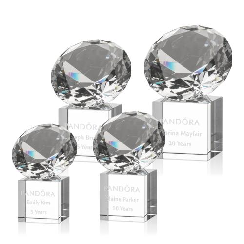 This award features a stunning diamond gemstone mounted onto a reflective optical crystal cube base.