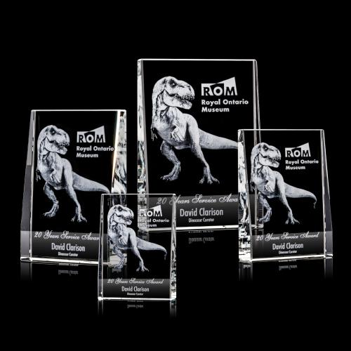 Monumental optical crystal award with a unique curved side that narrows up into a small wedge. Turn your award into a magnificent work of art with Dimensions 3D crystal.