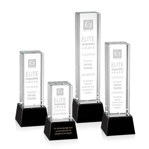 Brilliant tall Optical Crystal Columns are the perfect award to recognize a stunning achievement with light refracting through the beveled edges creating a grand and opulent award. Available in clear, black or blue base or freestanding. See associated items.