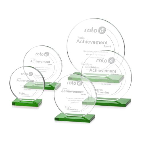 Our extraordinary cut Victoria Award features a flat edged Starfire disc mounted on an elegant emerald crystal base to create a sleek award to recognize excellence.