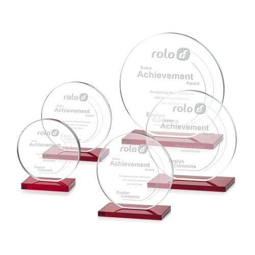 Our extraordinary cut Victoria Award features a flat edged Starfire disc mounted on an elegant ruby red crystal base to create a sleek award to recognize excellence.