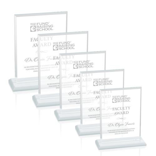 The Vitalia Award is framed by beveled edges and mounted on a beveled white base for a simple yet striking statement of achievement recognition.