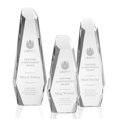 The Rawlinson Award is a monolithic optical crystal statue of excellence. With angular, beveled sides and top, this dazzling recognition sculpture is a sight to behold. Available in freestanding or with a clear or colored optical crystal base.