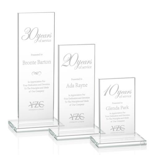 The elegant Starfire Crystal Heathrow Award features a vertical upright mounted on a clear base. The large decorating area is optimal for achievement recognition.
