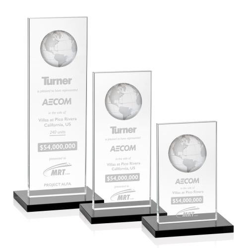Our Brannigan Globe Award features a 2" flat optical dome perched atop a tall crystal pane with a large decorating area to commemorate your exceptional achievement. Available with your choice of clear or colored base.
