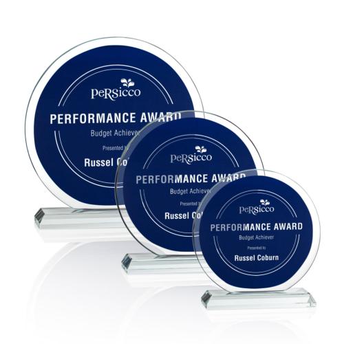 The Marcelina Award features a sapphire accent that is centered and laser engraved to reveal the clear Starfire Crystal hiding in front. A contemporary award to recognize excellence.