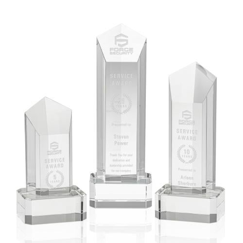 The Jolanda Award is a solid Optical Crystal pentagon tower with dramatic slant. With an elegant Clear base, this award is perfect for recognizing excellence. Second position etch optional.