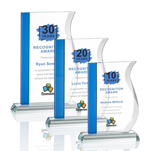 The contrast between the straight edge Blue accent of the Burbank and its S-curved right side creates a tension which meets in the middle, dissipating down into its base. An award with a story. Let your message POP with full color VividPrint!