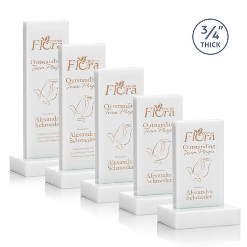 The Marvelous Hathaway Award features a striking White Crystal Tower mounted on a matching thick crystal base. A sensational award for a star recipient. Available with Deep Etch and 1 Colorfill or Full Color VividPrint.