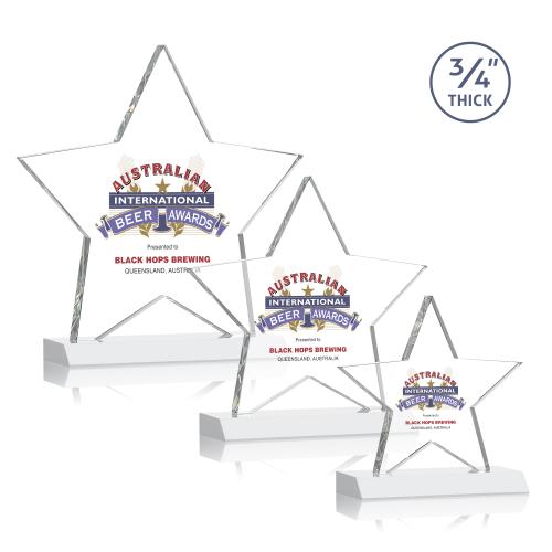 The Chippendale Star Award features a magnificent Optical crystal star mounted on top of a White front mitered base. The perfect recognition award for a star performer. Let your message POP with full color VividPrint!