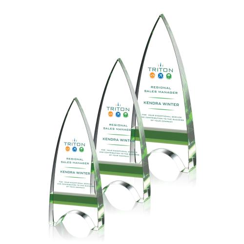 Our tapered arrowhead Optical Crystal tower is inlaid with Emerald Optical Crystal to create this unique, organic statement from a classic design. Let your message POP with full color VividPrint.