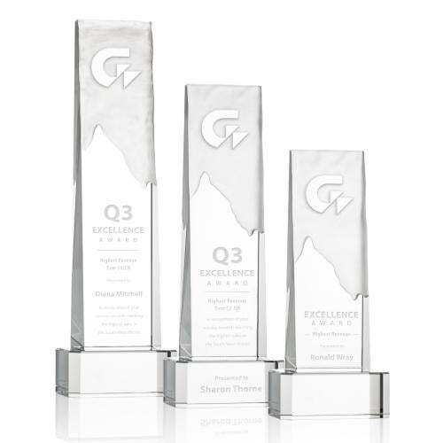 The Optical Rushmore Award is a towering monolith with your logo perched atop and soaring out of the hand-carved crystal mountainscape. With your choice of Clear or Colored Optical Base, this bold work of recognition will forever symbolize your incredible achievement. Second position etch on base optional.