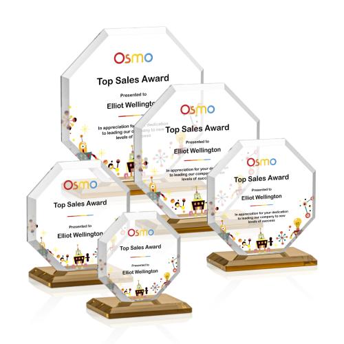 The Layland VividPrint Award features a beautifully beveled Starfire Crystal Octagon mounted on your choice of 9 distinct bases. The large decorating area is highlighted by the deep mitered edges that frame your outstanding achievement with refracted light.