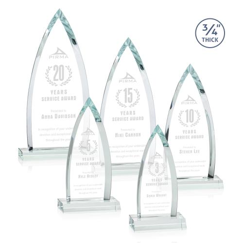 The striking Shildon Award is a 3/4" thick Starfire arrowhead with deep dramatic bevels to recognize a spectacular achievement. Mounted on a clear crystal base. Second position etch optional.