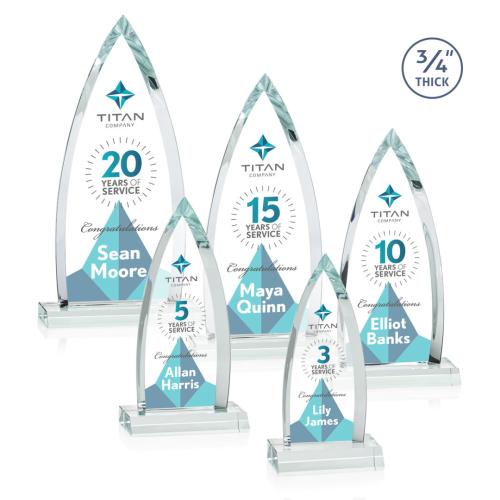 The striking Shildon Award is a 3/4" thick Starfire arrowhead with deep dramatic bevels to recognize a spectacular achievement. Mounted on a starfire crystal base and includes full-color VividPrint. Second position etch optional.