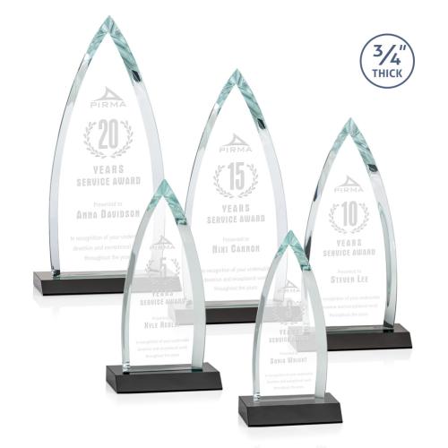 The striking Shildon Award is a 3/4" thick Starfire arrowhead with deep dramatic bevels to recognize a spectacular achievement. Mounted on an ebony crystal base. Second position etch optional.
