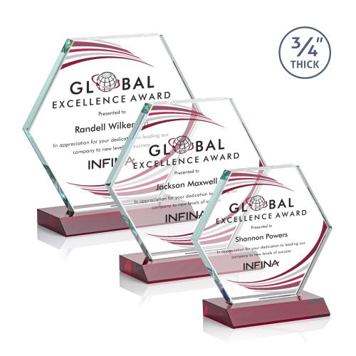 The Pickering VividPrint Starfire Crystal Award features a brilliant .75" thick hexagon mounted on a red crystal base to display your remarkable achievement proudly and prominently.