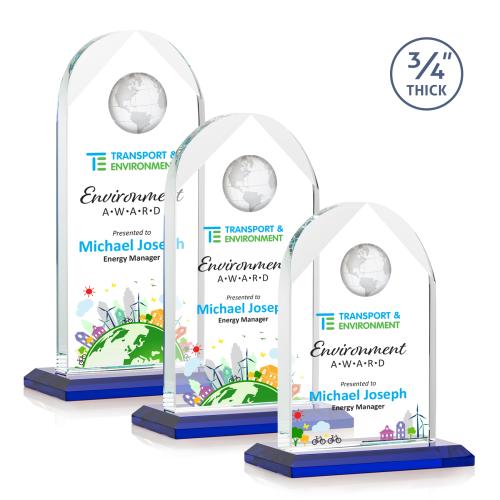 The Starfire Crystal Globe Award features an elegant beveled arched top, optical globe and mounted on a beveled crystal base. Let your message POP with full-color VividPrint!