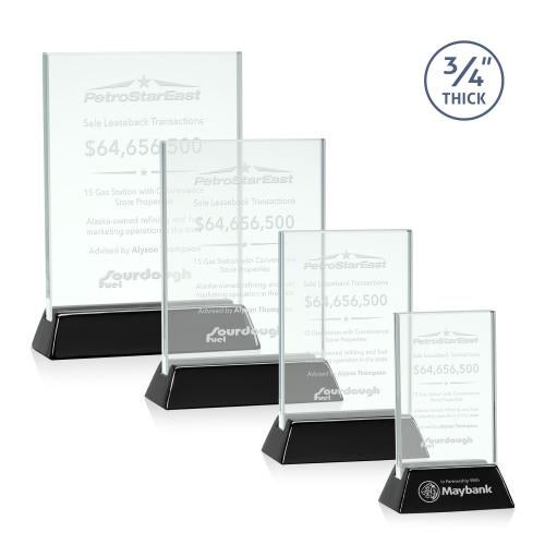 Vertical 3/4-inch thick jade award with a high-gloss piano black finish base. Available in 4 sizes. Starfire or Jade.