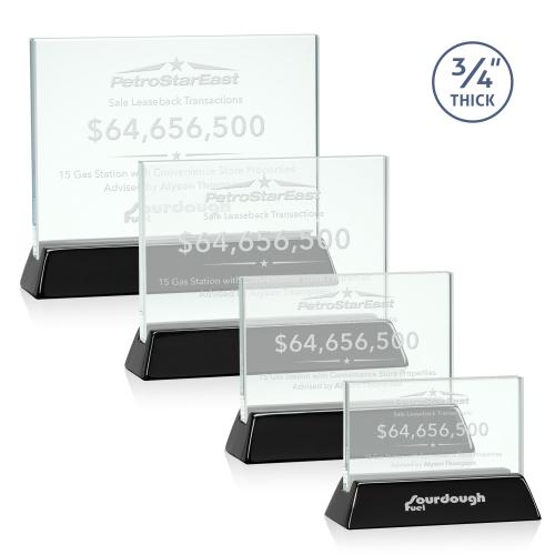 Horizontal 3/4-inch thick jade award with a high-gloss piano black finish base. Available in 4 sizes. Starfire or Jade
