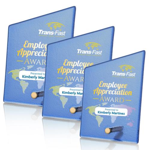 The budget-busting Atchison awards feature an elegantly frosted ice-textured back with a smooth, imprinted surface, perfect for recognizing excellence without breaking the bank. Available in various shapes and sizes, and includes a gold pin. Bring your artwork to life with full-color VividPrint!
