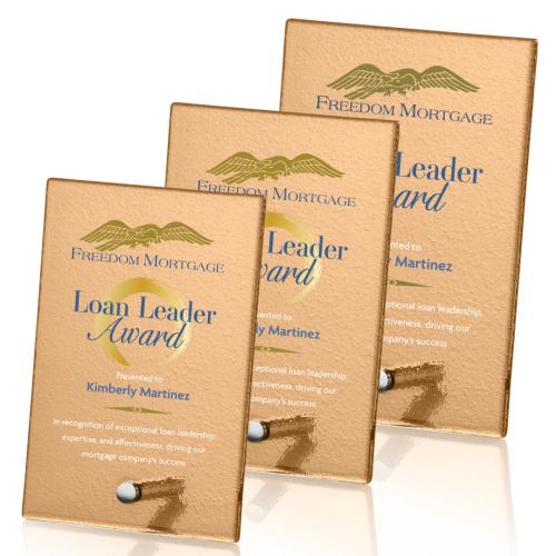 The budget-busting Atchison awards feature an elegantly russet-colored frosted ice-textured back with a smooth imprinted surface, perfect for recognizing excellence without breaking the bank. Available in various shapes and sizes, and includes a chrome-finished silver pin. Bring your artwork to life with full-color VividPrint!