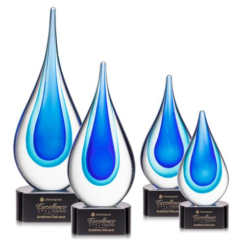 Clear glass surrounds this mesmerizing design with blue hues that form a complex teardrop shape. This captivating Marsielle Award is mounted to a clear, sapphire, or ebony crystal Paragon base creating a stunning recognition piece perfect to commemorate a landmark event or achievement. Packaged in a black satin-lined gift box.