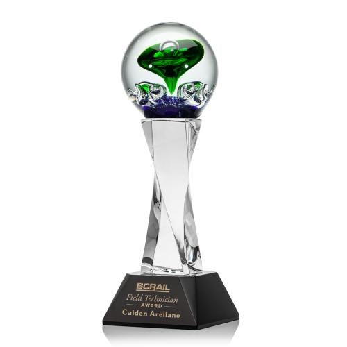A Stunning Hand Blown work of Art, the Aquarius Award is complete with a complimenting clear and black Optical Crystal Paragon base for personalization with a Logo or Name