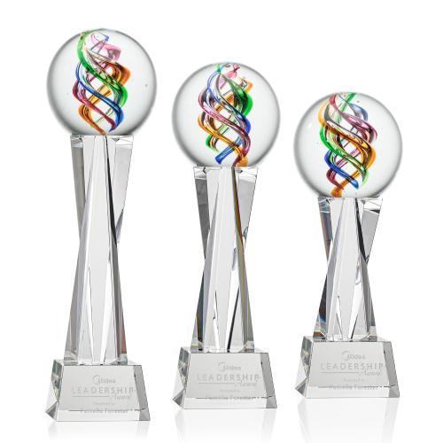 Experience the stunning spectrum of colors in the Galileo Art Glass Award! A Stunning Hand Blown work of Art Complete with a complimenting Clear, Green, Black or Blue Optical Grafton Base for personalization with a Logo or Name. Each piece is individually Hand-crafted. No two pieces are identical. All sizes are approximate and will vary from piece to piece. 1 Colorfill Included on blue, green, and black bases only.