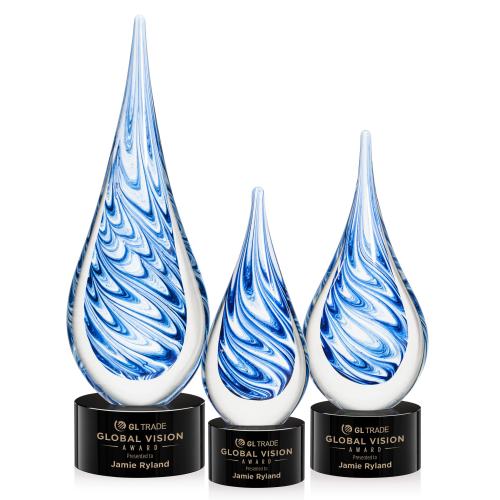 Unique swirls of blue and white make up a work of art that is the Marlin Award! This teardrop-shaped art glass comes complete with a complimenting base for personalization. The Marlin Award is truly a grand piece that the recipient will cherish for a lifetime. Each piece is individually Hand-crafted and no two pieces are identical.