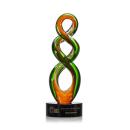 The Highlander Art Glass is a captivating and exceptional alternative to our traditional crystal awards. With a hand-blown, intertwined, closed spiral tower made of vibrant emerald and amber, each piece is unique and no two are the same. Available in 2 sizes and with Clear or Black Optical base.
