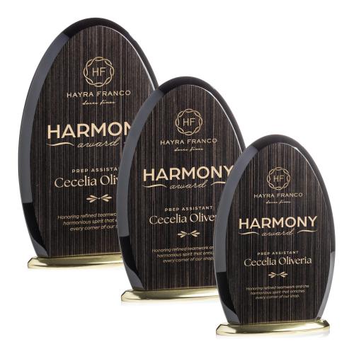 The Evington Slatewood Award features a rich slatewood-inspired composite backdrop, creating a warm yet contemporary look. Its graceful, freestanding silhouette is paired with a sturdy aluminum base, available in gold or silver, to suit a range of recognition styles. Designed to beautifully showcase engraved logos and text, this award offers a refined and modern way to honor achievement.