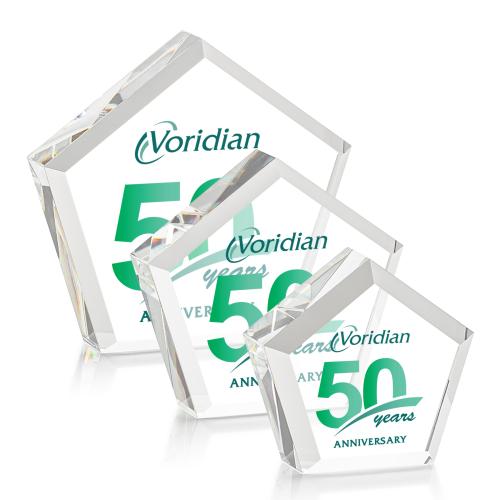 The Genosee VividPrint Paperweight is a thick and hefty Optical Crystal pentagon with a faceted border. A sparkling keepsake that will be cherished for years to come.