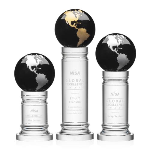 The Colvernstone Globe Award features an exquisite 4" Black Optical Crystal globe with the continents deep etched with optional gold or silver colorfill. The globes are resting on top of a statuesque Optical Crystal column for all to admire.