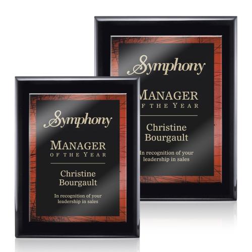 Solid Acrylic mounted onto a High Gloss Piano Finish Plaque. Available in different colors and styles.