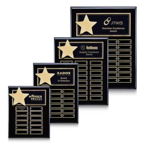 Stunning High-Gloss Backing Complete with 12 Plates Rosewood or Black Gold or Chrome *Perpetual Plaques include a decorated Header Plate. Perpetual Plaque Plates shipped Blank and Attached. *For Personalized Perpetual Plates, additional setup and run charges apply.